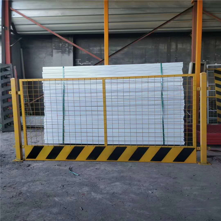 電梯井口防護(hù)網(wǎng)產(chǎn)品規(guī)格∶1.3m*1.5m 1.5m*1.8m 1.2m*1.8m也可按要求定做,采用25x25mm鋼管焊制,也可采用20x20mm30x30m,厚度:1.0--2.5mm ;高度1.2米,下口設(shè)20cm防踢板