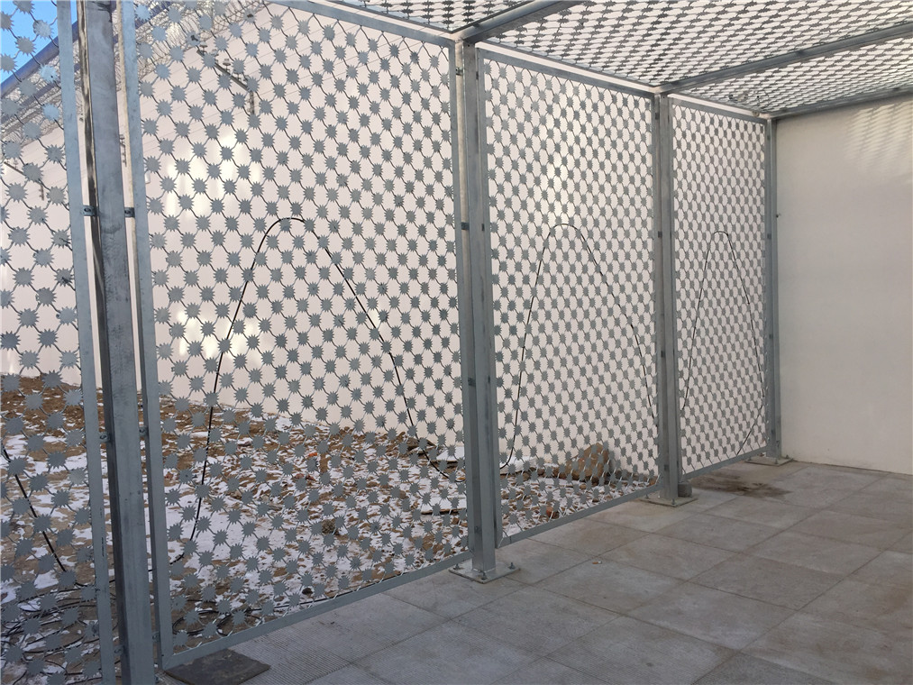 雪花刺片隔離網(wǎng)主要應(yīng)用于:監(jiān)獄隔離網(wǎng)、機(jī)場圍界、軍事設(shè)施、電力配電站、邊防線、邊防哨所等地的高安全隔離,具有防攀爬、抗剪切、高安全防護(hù)性能。