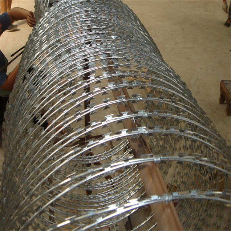 螺旋式刀片刺網(wǎng)也稱為刀片刺絲、刀片刺網(wǎng),是一種新型防護網(wǎng)。