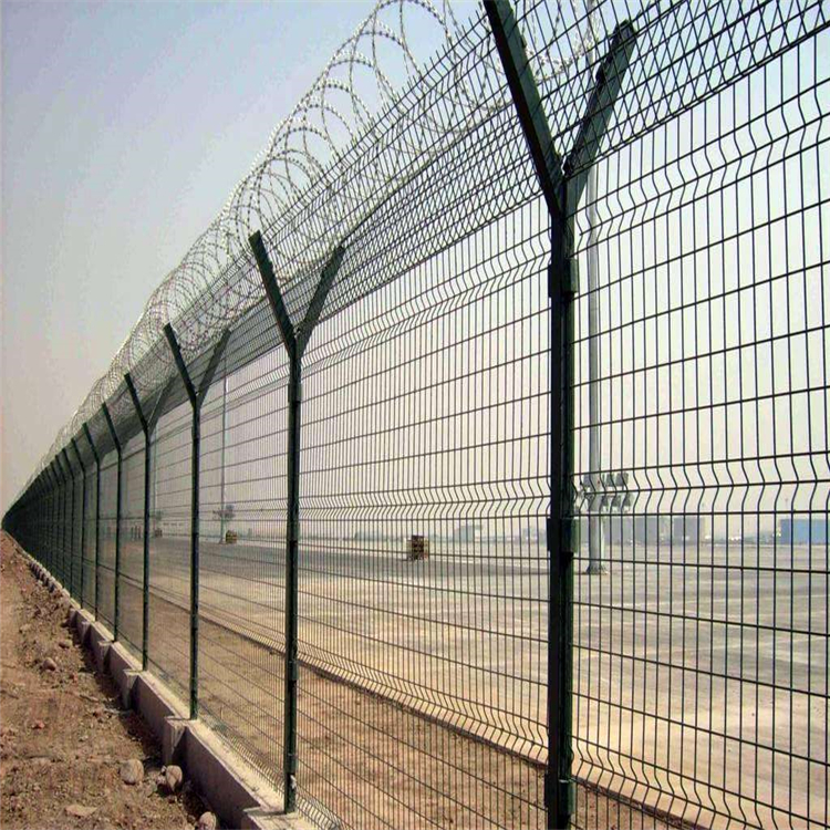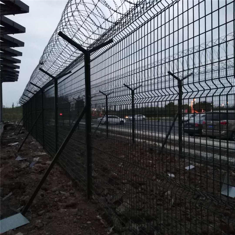如果Y型機場圍界網(wǎng)頂部裝有刀片刺絲和刀片刺繩,安全保護功能將得到很好的加強。其產(chǎn)品外形美觀,顏色多樣,不僅起到圍欄的作用,還起到美化的作用。Y型機場圍界網(wǎng)可以電鍍、熱鍍、噴涂、浸塑等防腐形式,具有良好的抗老化、防曬、耐候等特點。近年來,它已廣泛應用于機場和軍事基地等高度安全的地方。機場柵欄網(wǎng)由于其高安全性和良好的抗攀爬能力,網(wǎng)格通過特殊的SBS緊固件連接,有效防止人為破壞性拆卸,并且通過在四個橫向方向彎曲鋼筋,網(wǎng)格的強度顯著增加。這種產(chǎn)品經(jīng)久耐用,價格適中,適合大規(guī)模使用。我廠可根據(jù)用戶需求生產(chǎn)各種規(guī)格尺寸的護欄網(wǎng)產(chǎn)品。
