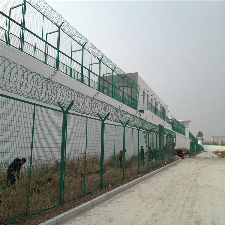 監(jiān)獄護欄網(wǎng)、監(jiān)獄鋼網(wǎng)墻、監(jiān)獄圍欄這三個叫法實際上就是一種產(chǎn)品,每個地區(qū)的叫法按不同,都是監(jiān)獄看守所安裝的一種防護網(wǎng),材質一般采用Q195低碳鋼絲焊接成所需尺寸的網(wǎng)片大小,一般每片規(guī)格有2米x2.5米,2.5米x3米,1.8米x2米等各種尺寸,客戶可根據(jù)要求選購,成型的網(wǎng)片一般都是沒有經(jīng)過表面處理的黑片,有些是需要焊接邊框的,有些是直接焊成雙絲的,在經(jīng)PVC浸塑處理,PVC浸塑是通過加熱浸塑液放入監(jiān)獄護欄網(wǎng)、監(jiān)獄鋼網(wǎng)墻、監(jiān)獄圍欄的黑絲網(wǎng)片及立柱使之冷卻后塑料包覆在護欄網(wǎng)表面。這種工藝有無需模具、加工成本低、成型容易、具有豐富的色彩,良好的防護性,優(yōu)異的耐寒保溫性以及抗酸堿性等特點被廣范使用,顏色可選草綠色,墨綠色這兩款是最常用的。