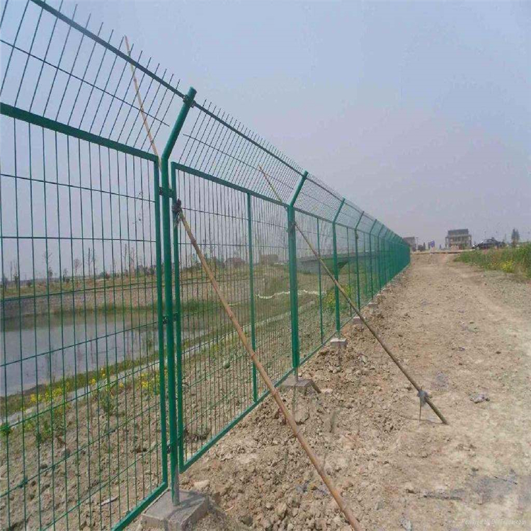 鐵絲網(wǎng)圍欄也可稱作∶隔離網(wǎng)、圍欄網(wǎng)、鐵絲護(hù)欄網(wǎng)、圍墻鐵絲網(wǎng)等。它是由盤條經(jīng)過拉拔成較細(xì)的鐵絲(冷拔絲),然后在經(jīng)過大型焊接機(jī)將鐵絲焊接成型(就是我們俗稱的鐵絲網(wǎng)片)。在配上各種不同的立柱進(jìn)行連接。構(gòu)成了美觀大方,防護(hù)性能較高的鐵絲網(wǎng)圍欄。由于它的優(yōu)良特點(diǎn),安裝簡便被廣泛應(yīng)用于高速公路、鐵路、機(jī)場、體育場、監(jiān)獄、養(yǎng)殖、果園防護(hù)等領(lǐng)域的防護(hù)。