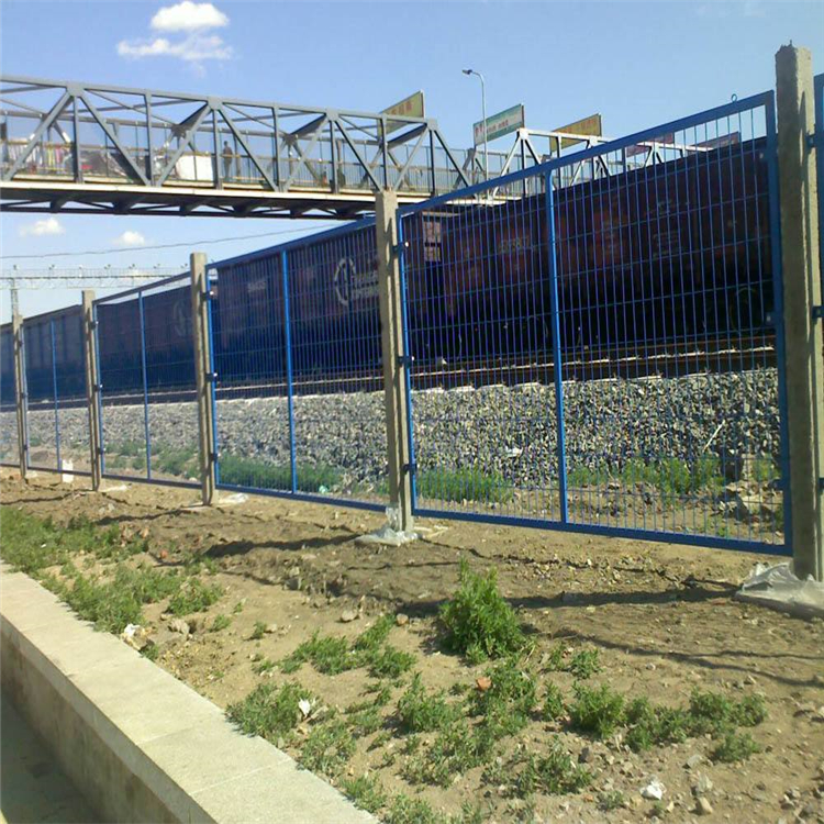 鐵路防護(hù)柵欄主要用于鐵路封閉、高速公路隔離柵、開發(fā)區(qū)圍界、場區(qū)圍網(wǎng),采用立柱采用混凝土澆筑件,工程造價低,強(qiáng)度高·整體穩(wěn)定好,彩色塑層具有良好的防腐蝕和裝飾效果,網(wǎng)圍界整體和諧美觀。