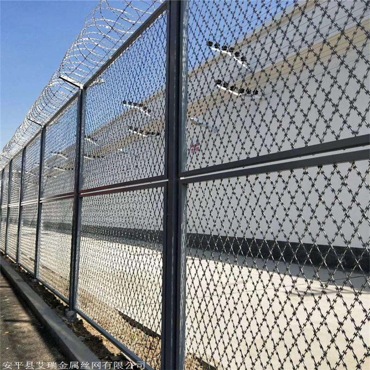 安平縣艾瑞金屬絲網有限公司生產的監(jiān)獄周界圍網的特點︰具有結構新穎、堅固緊密、網面平整、網孔均勻、防攀爬、防拆卸、防剪、抗腐蝕性強等特點。