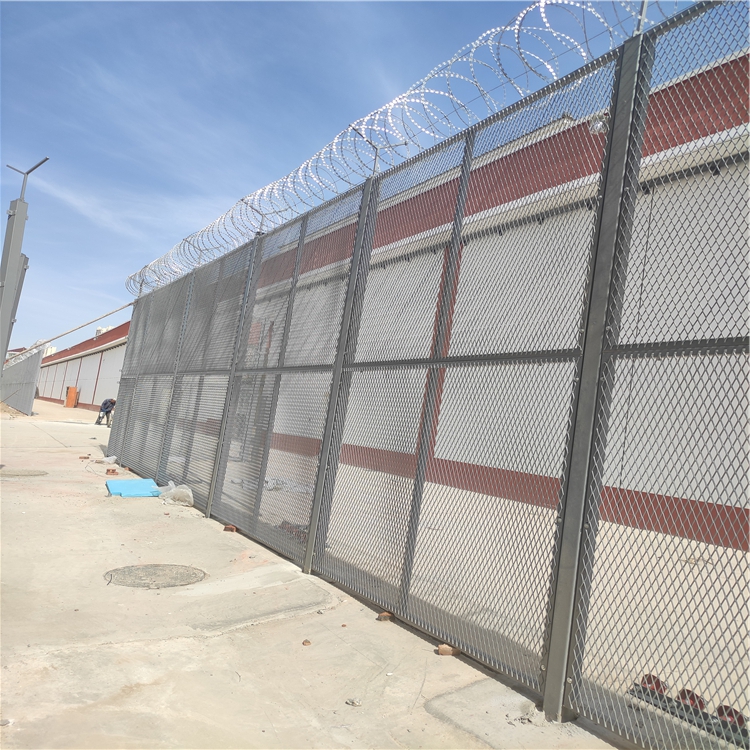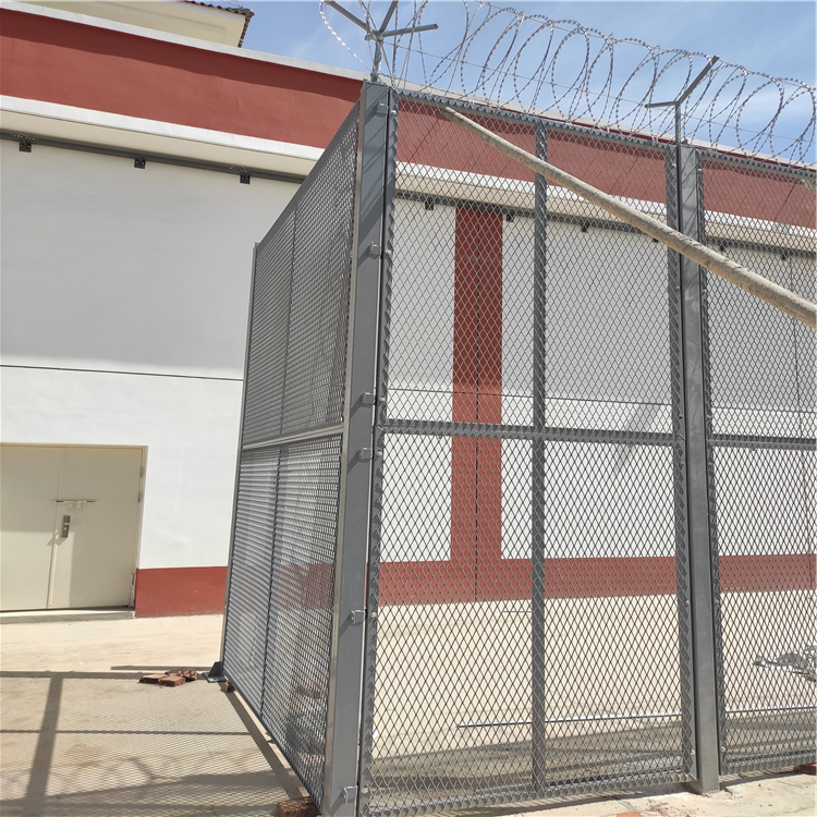 少管所周界鋼網(wǎng)墻主要是采用高強(qiáng)度的刀片刺網(wǎng)與普通防護(hù)網(wǎng)的結(jié)合,由v型支架立拄,加強(qiáng)型焊接片網(wǎng),安全防盜連接件和刀片刺網(wǎng)組成.刀片刺網(wǎng)是一種新型防護(hù)網(wǎng),由銳利尖角鍍鋅鋼板或不銹鋼薄板做刀片,鋼絲做芯線組合而成的防護(hù)器材.