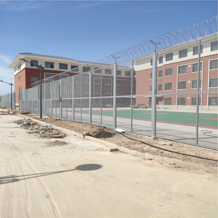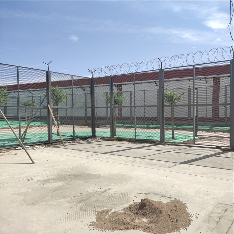 監(jiān)獄區(qū)域封閉隔離網(wǎng)網(wǎng)片:通常采用四周焊接邊框以增加整體的剛度和防護力度,網(wǎng)孔以50x200mm,50x100mm的長方孔和50x50mm的正方孔為常見,材料多為直徑為5.0mm,6.0mm,6.5mm的低碳鋼絲或鍍鋅絲焊接而成,四周的邊框一般為方鋼,規(guī)格可根據(jù)實際的網(wǎng)片大小而定,如30x30mm,40x40mm,30x50mm,50x50mm等,在這里我們需要強調(diào)一下,監(jiān)獄隔離網(wǎng)與其他場所使用的隔離網(wǎng)的邊框設計上是有一些區(qū)別的,那就是監(jiān)獄隔離網(wǎng)一般不允許中間加橫撐(中央起到橫向支撐網(wǎng)子的作用),這里面的原因就不言而喻了。邊框的左右兩側(cè)一般會焊接側(cè)邊耳鋼板,以便于和兩側(cè)的立柱相連接。