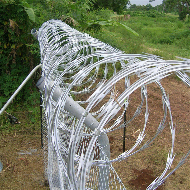 刺絲滾籠正規(guī)正常流程:Q235黑鋼材截?cái)?、焊接等制作成型后,整體熱鍍鋅防腐處理,才能達(dá)到《鐵路線路防護(hù)柵欄》[通線(通用要求的:鍍鋅量:270g/平米。刀刺滾籠、縱向拉筋等其他部分鍍鋅量均應(yīng)大于:270g/平米。劣質(zhì)刺絲滾籠實(shí)際試用壽命基本1-2年,刺絲滾籠生銹主要原因是:刀片橫斷面沒有鋅層,現(xiàn)階段刀片部分的制作過程是:鍍鋅板材沖壓而成,因此橫斷面是無鋅層保護(hù)的。這是現(xiàn)階段行內(nèi)主要生產(chǎn)工藝缺陷的問題。