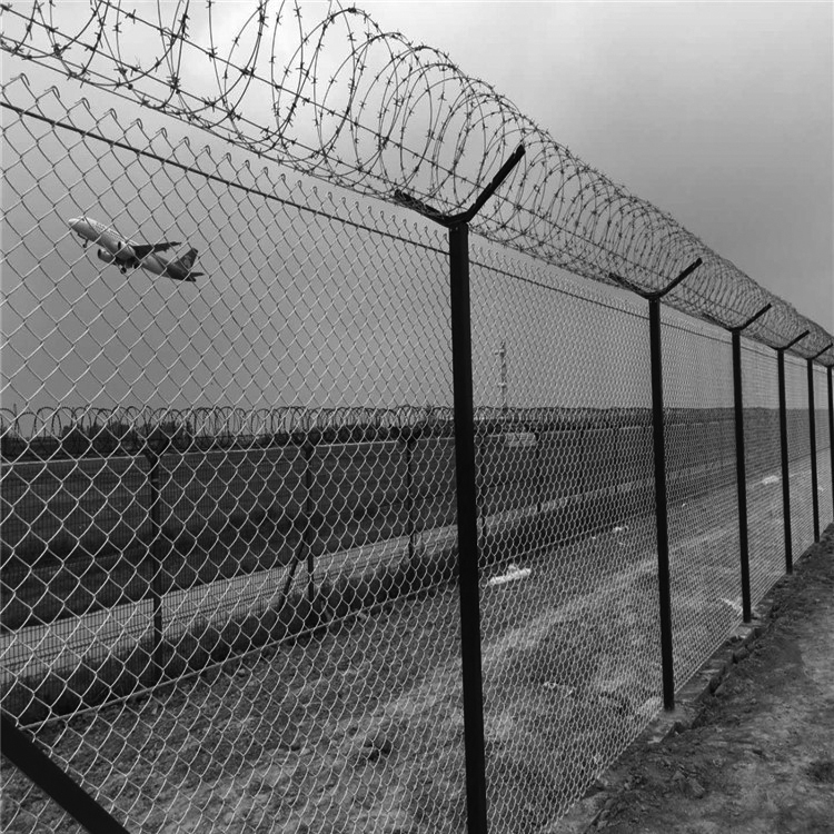 鋁包鋼機(jī)場(chǎng)圍界主要用于機(jī)場(chǎng)外圍的防護(hù)使用,是護(hù)欄網(wǎng)的一種,又被稱作鋁包鋼機(jī)場(chǎng)圍欄。鋁包鋼絲機(jī)場(chǎng)護(hù)欄具有匠心的鋼絞線穿插式連接立柱和網(wǎng)片,由Y型立柱、鋁包鋼勾花網(wǎng)、鋁包鋼刺絲網(wǎng)組成。