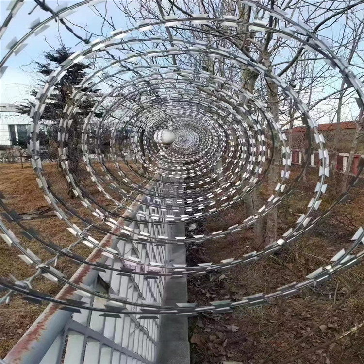 刀刺網(wǎng)用于圍墻上起到很好的防爬效果,從開端在上面安置玻璃碎片到現(xiàn)在運(yùn)用刀片刺繩等等,愈加簡(jiǎn)略愈加強(qiáng)悍的防護(hù)效果了公民的生命和產(chǎn)業(yè)安全,詳細(xì)裝置方法如下。刀片刺繩每2圈有3-7個(gè)卡扣,并且是圈圈相卡,擺開今后構(gòu)成螺旋狀,拉伸的時(shí)分留意必定要帶防護(hù)手套,防備劃傷。