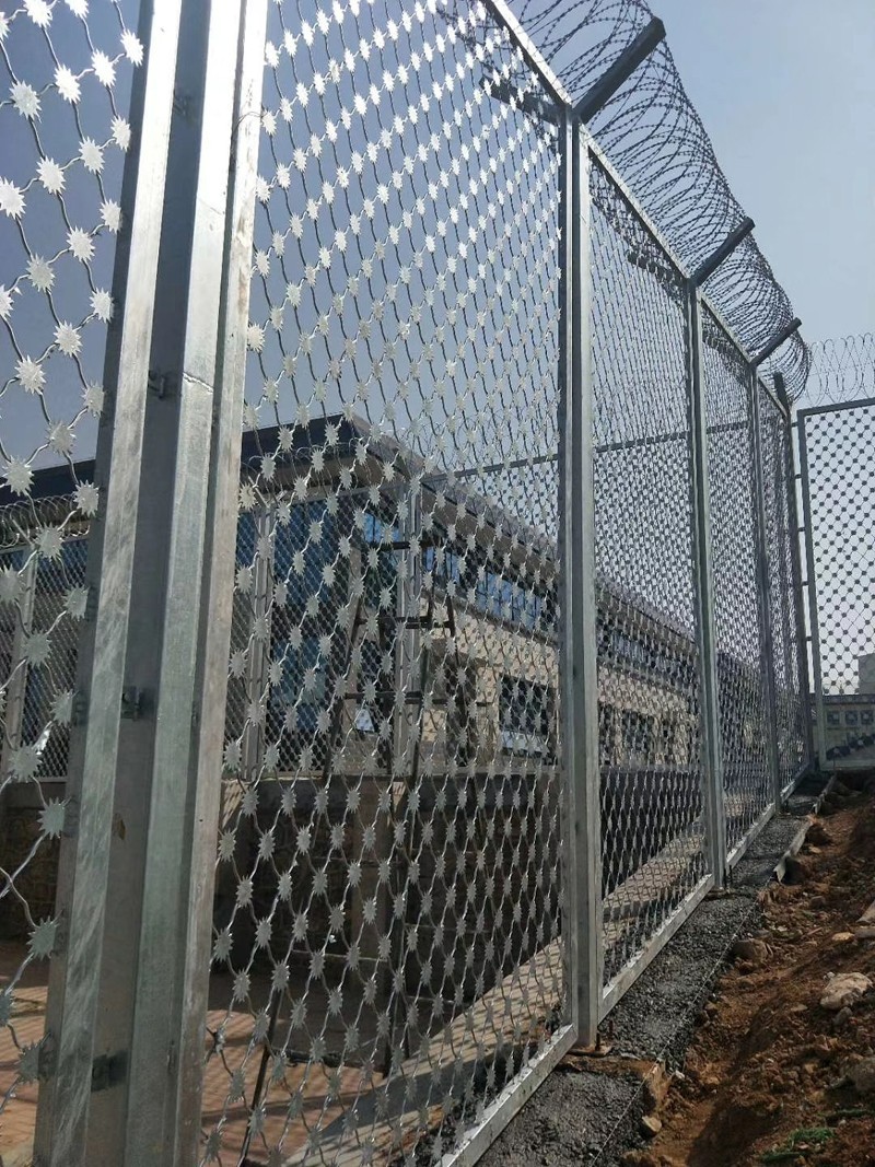 的節(jié)點上,形成刺形保護,有效的防止了手握腳攀。為此該網(wǎng)開始在監(jiān)獄或看守所使用。它的誕生很好解決了什么叫做有墻不能爬、有墻