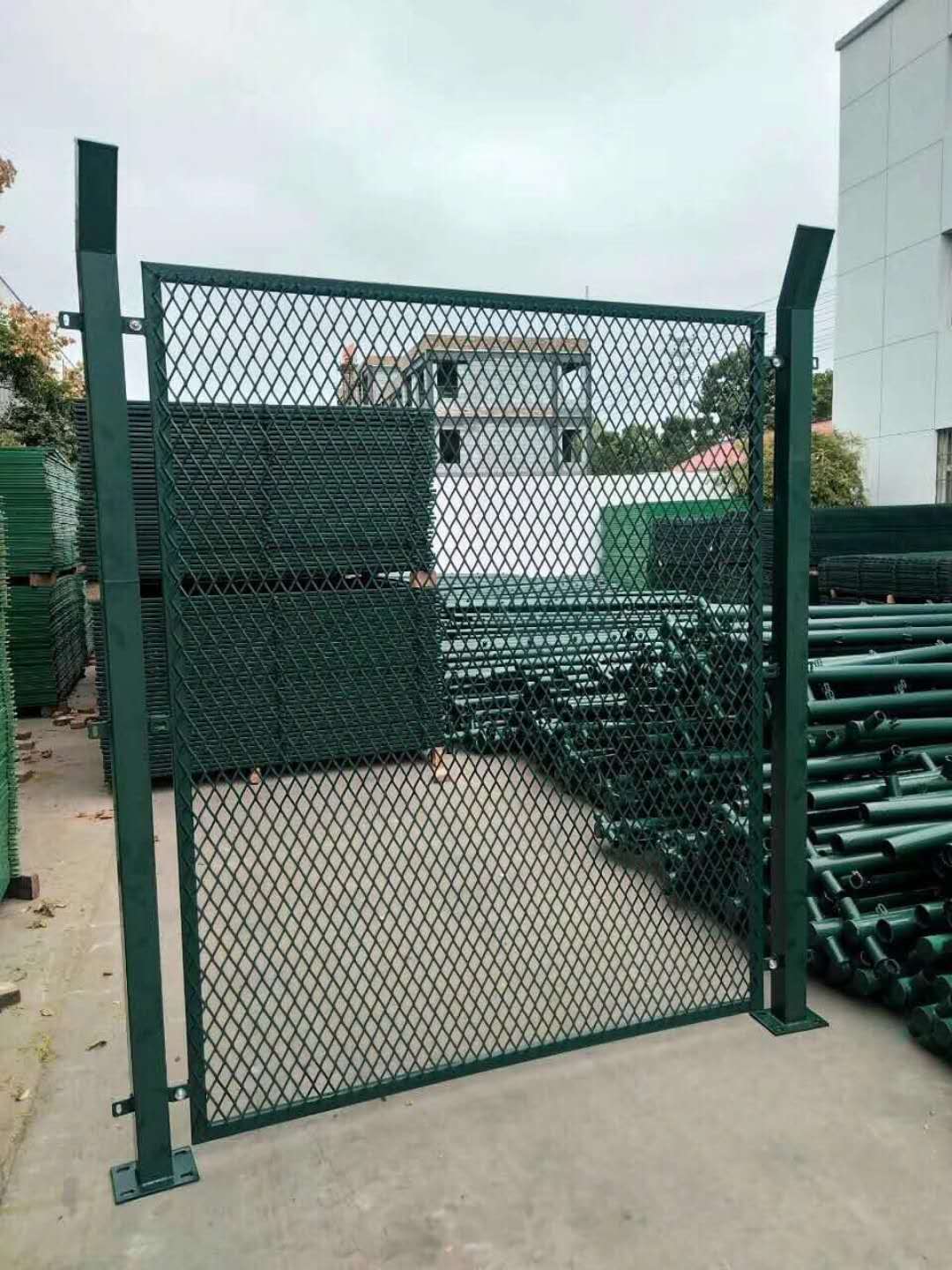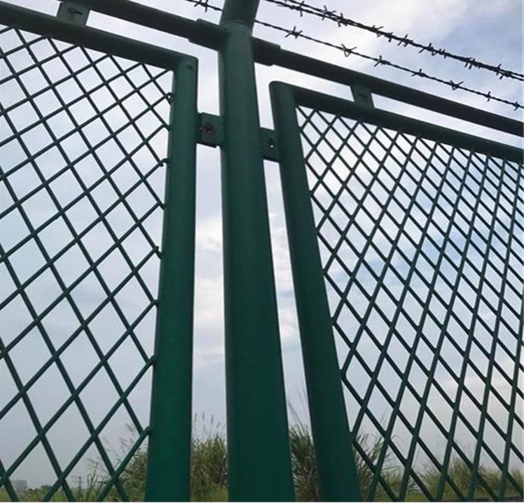 鋼板網(wǎng)圍墻產(chǎn)品選用菱形鋼板網(wǎng)做為圍墻防護(hù)網(wǎng)面,其鋼板網(wǎng)長節(jié)距100mm,短節(jié)距50mm,鋼板網(wǎng)絲梗厚度4.0mm,此規(guī)格鋼板網(wǎng)抗拉強(qiáng)度大,抗沖擊性強(qiáng),網(wǎng)面堅固,不易變形,菱形網(wǎng)孔不利于攀越。邊框根據(jù)防抗沖擊力選用不同厚度的方管或圓管,立柱根據(jù)鋼板網(wǎng)圍墻的高先用不同厚度的方管或圓管。菱形鋼板網(wǎng)和邊框通過熔化極氣體保護(hù)焊焊接在一起,邊框和立柱對稱焊接三至六個螺栓板,采用內(nèi)梅花防盜螺栓連接在一起。用途:主要用于重工業(yè)區(qū)圍墻,水庫圍墻,海邊圍墻,化工廠圍墻等空氣污染和腐蝕性強(qiáng)的區(qū)域圍墻