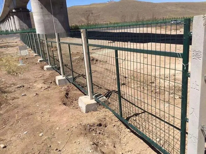鐵路線路防護(hù)柵欄通常分為8001和8002,外形尺寸為1.79*2.76,8001一般用在橋上,并帶有一根小立柱,8002一般用在橋下,沒有小立柱,只是一張網(wǎng)片:8001上端30公分折彎,這也是8001鐵路防護(hù)柵欄與8002鐵路防護(hù)柵欄不同之外,8002是直片沒有折彎8001鐵路防護(hù)柵欄網(wǎng)孔標(biāo)準(zhǔn)75*150mm.絲徑4.0mm.框架30*50*2.0mm,立柱40*40*2.5mm.鐵立柱代替了澆筑水泥立柱.美觀大方,鐵路防護(hù)柵欄8001是鐵路常用的交通設(shè)施。