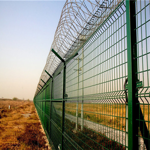 機(jī)場圍界是一種安全防護(hù)網(wǎng),我廠生產(chǎn)的些種護(hù)欄網(wǎng)超過國家標(biāo)準(zhǔn)可以使用15年,現(xiàn)在機(jī)場鋼筋網(wǎng)圍界又稱作“機(jī)場防護(hù)欄”、“Y型安全防御護(hù)網(wǎng)”,它是由V型支架立拄,加強(qiáng)型焊接片網(wǎng),安全防盜連接件和熱鍍鋅刀片刺籠組成是強(qiáng)度和安全防御性級別很高的隔離柵產(chǎn)品。