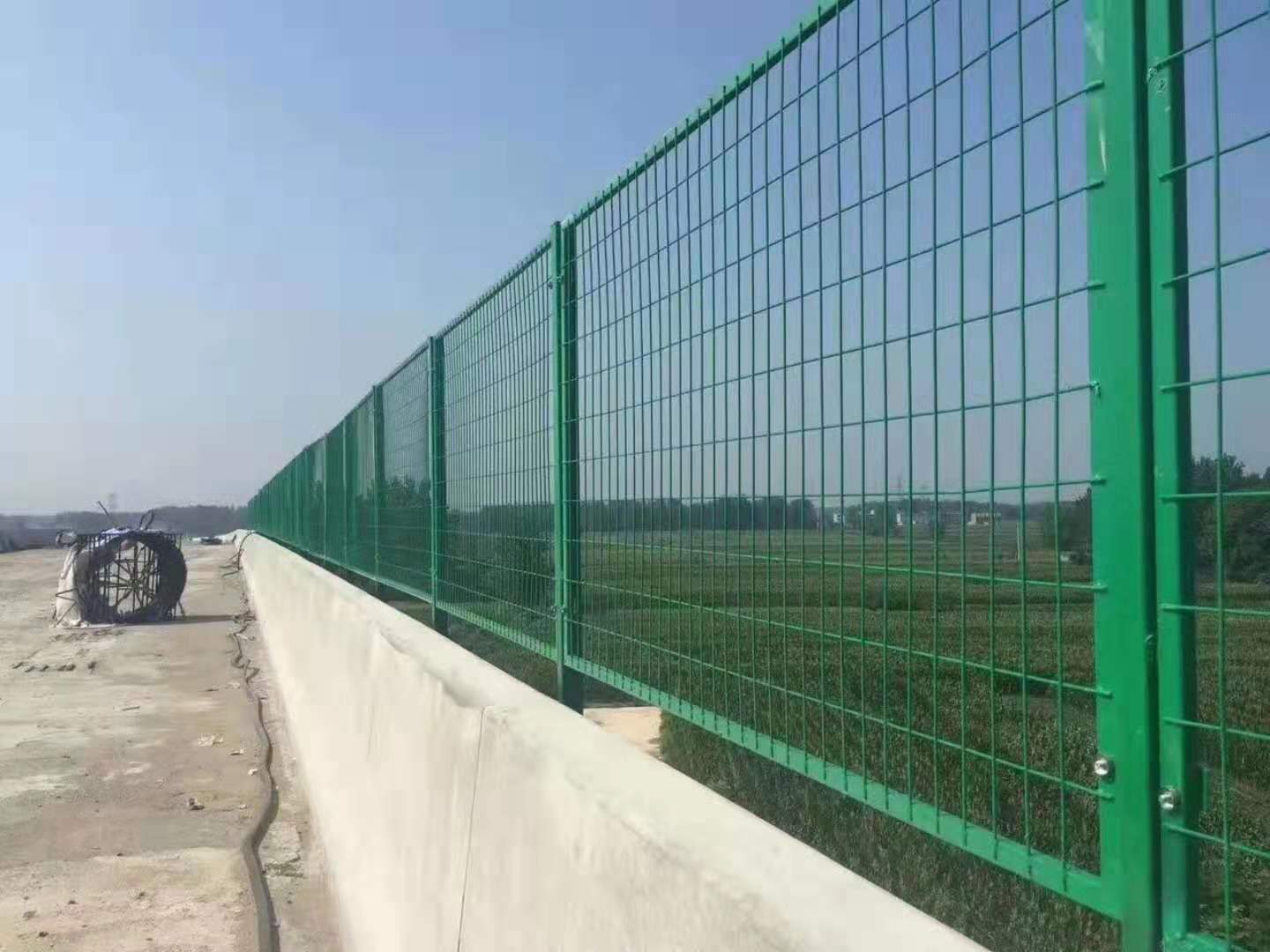 該產(chǎn)品防腐蝕性能好,有極強的防腐抗氧化等特點,具有一般隔離網(wǎng)都不具備的優(yōu)點??朔髓F絲網(wǎng)片焊接點易開焊脫落的缺點,一次焊接松動,是保護橋梁、高速公路、道路兩側(cè)和生態(tài)環(huán)境的設施.橋梁防拋網(wǎng)適用于選用混凝土護欄的上跨橋,防落物網(wǎng)設置距離為2m,膨脹螺栓應留意對螺栓顯露部分妥善維護,防拋網(wǎng)立柱與銜接板,接地扁鋼應保證焊為-體,銜接板經(jīng)過膨脹螺栓固定;除緊固件、膨脹螺栓選用熱浸鍍鋅處理外,其它構(gòu)件均應先進行熱浸鋅后再進行涂塑處理,圖中點劃線處為銜接板彎曲處。
