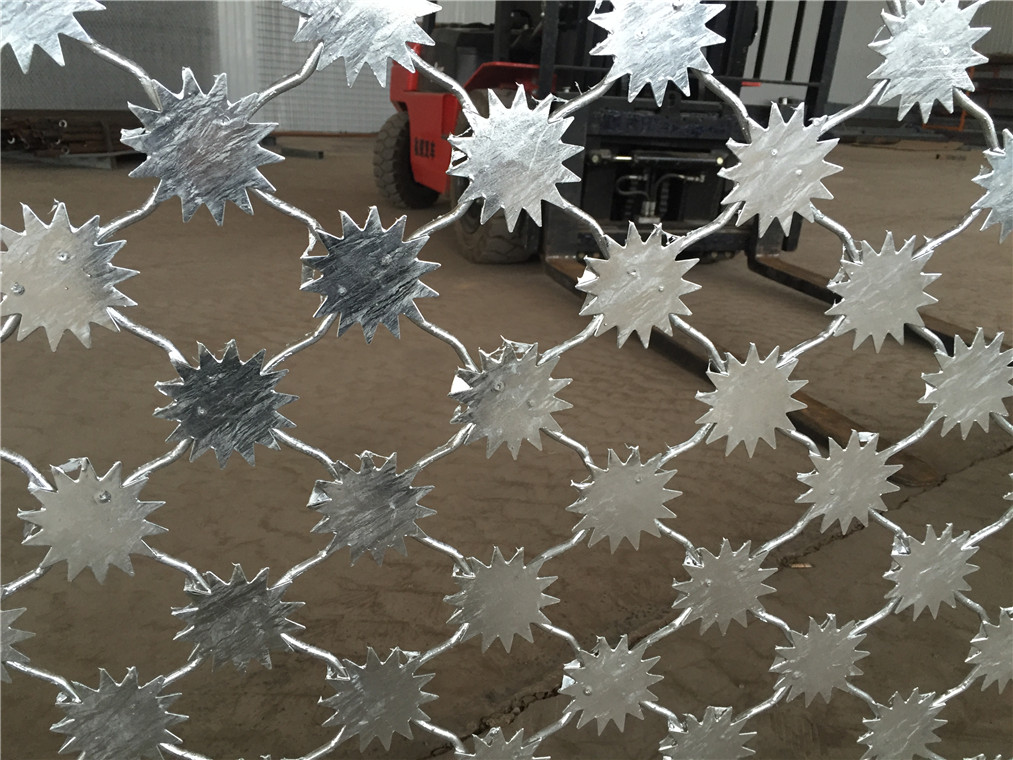 2、監(jiān)獄隔離網(wǎng)浸塑制作流程,將工件進(jìn)行去除氧化層→水洗→將工件加熱至380攝氏度高溫→將加熱好的工件放入固體粉末槽,粉末經(jīng)過(guò)高溫粘附在監(jiān)獄隔離網(wǎng)的表面→*后進(jìn)入烘烤固化室→成品。優(yōu)點(diǎn):色彩鮮艷,不易老化,顏色多種選擇,防腐壽命10年以上,缺點(diǎn):時(shí)間久了以后,破損地方容易生銹,維護(hù)成本較高。