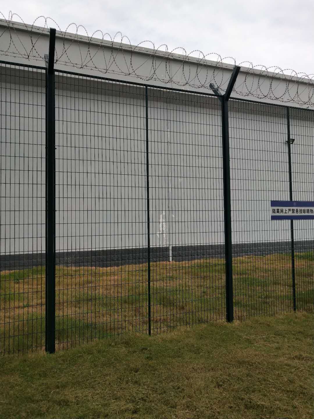 監(jiān)獄護欄網(wǎng)又稱作"Y型安全防御護網(wǎng)"監(jiān)獄鋼網(wǎng)墻,是由V型支架立柱,加強型焊接片網(wǎng),安全防盜連接件和熱鍍鋅刀片刺籠組成強度和安全防御性級別很高,近年來,被廣泛應用在監(jiān)獄,機場,軍事基地等高安全場所。