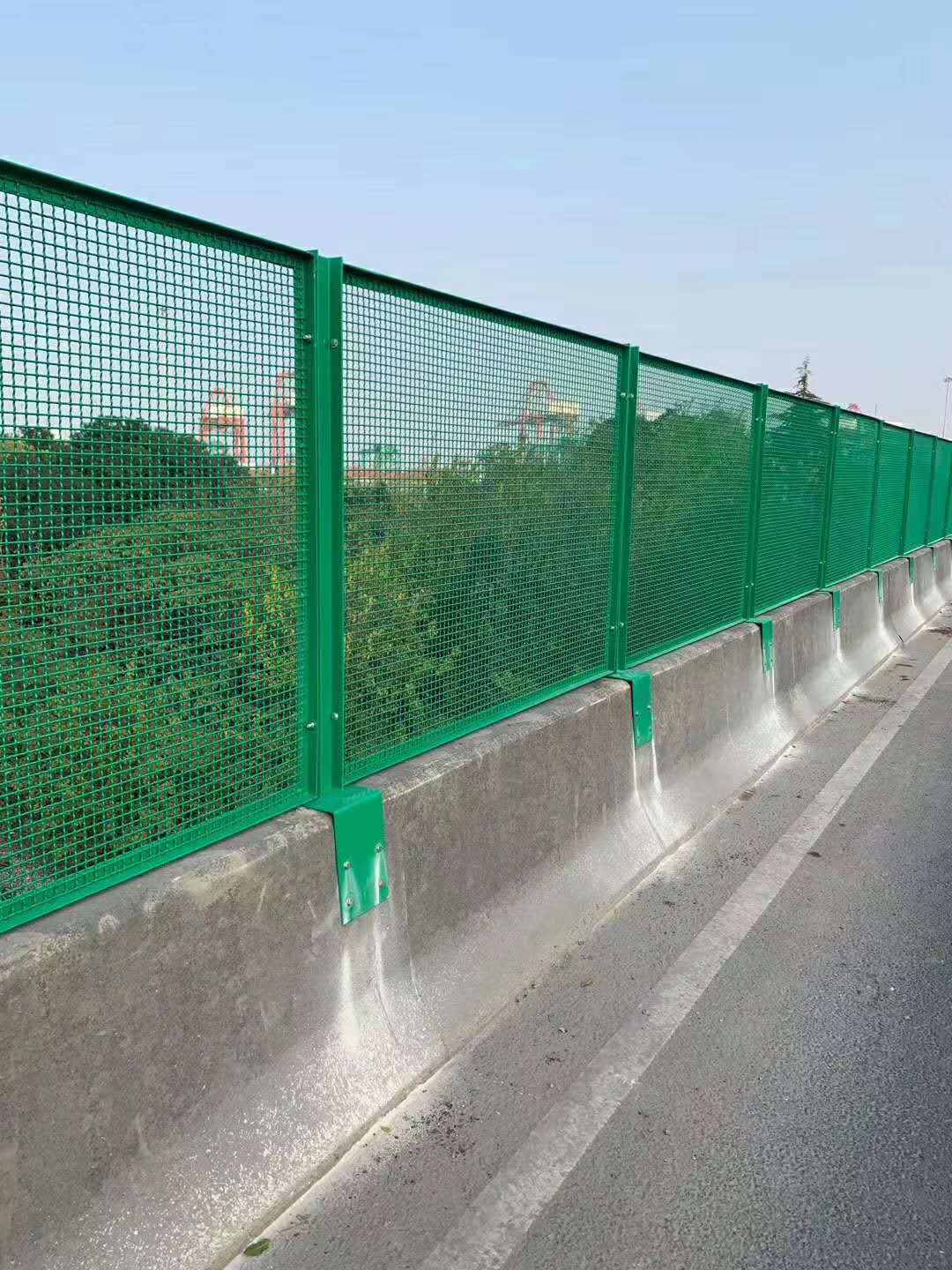另一種是在混凝土護欄頂部安裝,可以使用預(yù)埋方法預(yù)先置入一段內(nèi)徑與防落網(wǎng)外徑相符的鋼管,安裝時直接插入再加固,也可以在混凝土護欄頂部開孔置入膨脹螺栓和立柱法蘭盤固定的方法進行安裝。    需要注意的是,橋梁防拋網(wǎng)的網(wǎng)孔要求要小,連接板需要與橋梁防落網(wǎng)立柱焊接成一體,而且在采用頂部安裝時,如果混凝土護欄項部非常小,需要采取一定的輔助辦法進行加固,防止護欄網(wǎng)出現(xiàn)傾倒現(xiàn)象。