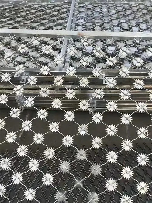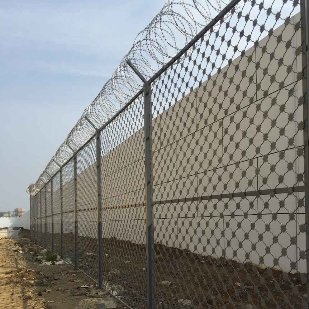 太陽花刺片美格網(wǎng)常用于監(jiān)獄鋼網(wǎng)墻制作,是非常堅(jiān)固牢靠防攀爬的太陽花刺片美格網(wǎng)鋼網(wǎng)墻,在日常生活中,我們熟悉的美格網(wǎng)就是居民家中防盜窗那樣的,孔型優(yōu)美.牢固,不過我們今天說的美格網(wǎng)和工平常接觸的美格網(wǎng)可不一樣。我們今天說的美格網(wǎng)在每個交點(diǎn)處都焊接了太陽花刺片。刺片采用太陽花形狀設(shè)計(jì),此設(shè)計(jì)不僅美觀大方,而且具有極強(qiáng)的防護(hù)力。每個刺片有14個花刺,焊接固定在美格網(wǎng)上。由于花詞密集不易觸摸,一般作用于監(jiān)獄、看守所、戒毒所等等做為外網(wǎng)、大門通道等等。下面是太陽花刺片監(jiān)獄鋼網(wǎng)墻的材料介紹。