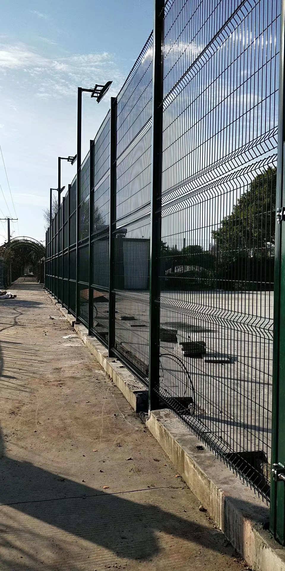 機場圍界網(wǎng)常用的兩種結(jié)構(gòu)就是雙邊絲的和框架的,這兩種結(jié)構(gòu)的除開框架護欄網(wǎng)的邊框規(guī)格其他的基本都是相同的規(guī)格。常用高度為2.0m,大高度可做2.4m;柱中到柱中的距離一般為3m;折彎的都采用的是頂部30公分30度角的折彎,立柱多采用60*60*3mm方管;網(wǎng)孔大小通常為50*100mm;塑后絲徑范圍:5.0-6.5mm。機場圍界又稱作“Y型安全防御護網(wǎng)”,是由V型支架立柱,加強型焊接片網(wǎng),安全防盜連接件和熱鍍鋅刀片刺籠組成強度和安全防御性級別很高。近年來,被廣泛應(yīng)用在機場,軍事基地等高安全場所。注:如果在機場圍界頂部加裝刀片刺絲、刀片刺繩后又很好的增強了安全防護性能。