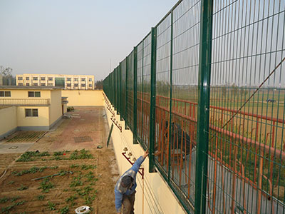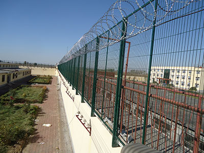 監(jiān)獄護(hù)欄網(wǎng)又稱作“Y型安全防御護(hù)網(wǎng)”,是由V型支架立柱,加強(qiáng)型焊接片網(wǎng),安全防盜連接件和熱鍍鋅刀片刺籠組成強(qiáng)度和安全防御性級別很高?,F(xiàn)被廣泛應(yīng)用在監(jiān)獄,軍事基地等高安全場所。注:如果在監(jiān)獄護(hù)欄網(wǎng)頂部加裝刀片刺絲、刀片刺繩后又很好的增強(qiáng)了安全防護(hù)性能。采用電鍍、熱鍍、噴塑、浸塑等防腐形式,具有很好的抗老化、抗曬、耐候等特點(diǎn)。其產(chǎn)品造型美觀、花色多樣,既起到圍欄作用,又起到美化作用。由于具有安全性高、防攀爬能力好,網(wǎng)片連接方式采用特制SBS緊扣件,有效防止人為的破壞性拆卸,橫向四道折彎加強(qiáng)筋,使網(wǎng)面強(qiáng)度顯著增加。