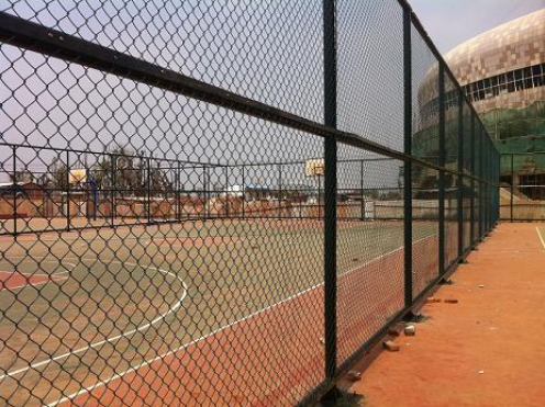6米高體育場(chǎng)圍欄網(wǎng)的材質(zhì)為美觀及保證質(zhì)量,絕大部分采用PE包塑鐵絲網(wǎng)做籃球場(chǎng)的圍網(wǎng),既可節(jié)省每年為普通鐵絲重新油漆的費(fèi)用,其使用壽命又較普通鐵絲網(wǎng)長(zhǎng)三~五年,網(wǎng)孔規(guī)格為45mm×45mm,可以保證不會(huì)卡住或穿過(guò)網(wǎng)球。